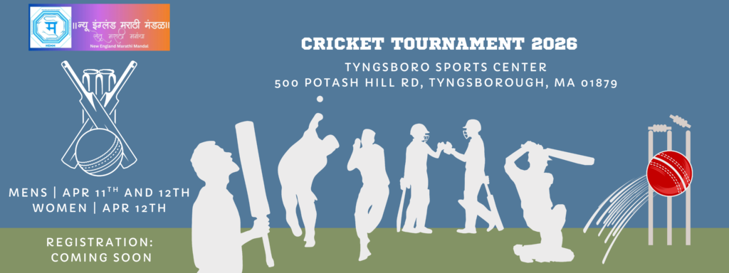 New England Marathi Mandal proudly presents the NEMM Cricket Championship 2026, an exciting cricket tournament for Men and Women. Join us for a thrilling weekend of competitive matches, team spirit, and community bonding.